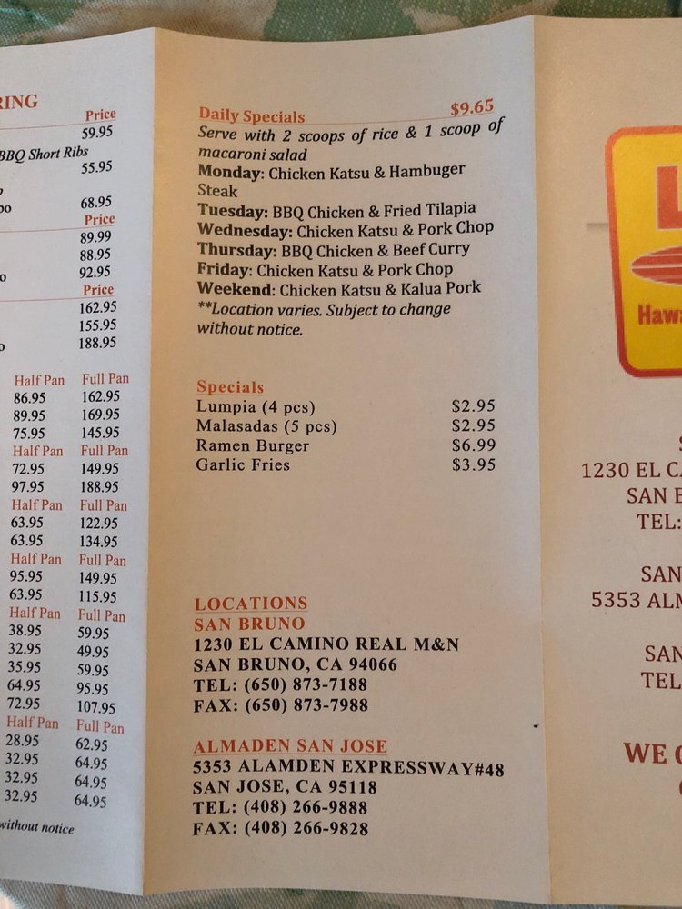 L&L Hawaiian Barbecue Menu (Update 2025)